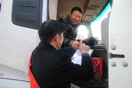 上圖為黨支部成員給過路司機送上暖暖的姜茶