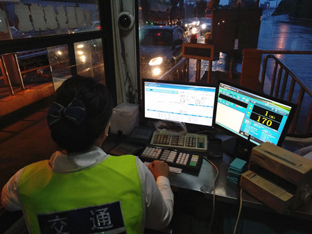 圖為高峰時期的ETC出口車道情況 為保暢通,負責ETC車道的工作人員要時刻盯著過往的車輛,對于ETC操作系統(tǒng)上顯示的誤闖車,他得馬上示意司機停車,用人工操作系統(tǒng)讀卡付費。遇ETC車輛可直接通過,不必停車取下OBU中的ETC卡再人工刷一遍,大大節(jié)省了ETC車輛在非正常情況下的通站時間。看著ETC車道源源不斷的車流,收費員小孫一邊揉著眼睛一邊說:“操作起來還蠻順手的,就是有的司機開著遠光燈過來,要第一時間辨別車牌號與電腦流水相不相符,眼睛被刺得直冒金星,很痛很吃力。” 在ETC車道給非ETC車輛增加一個臨時通道的大膽嘗試,一改以往誤闖車輛進入ETC車道后要么引導到旁邊人工車道收費,要么就是先手動放行,再將通行卡拿去人工車道作整車插入操作,不僅需要登記和旁站等手續(xù),又給后方車輛造成不少的等待時間。而現(xiàn)在的一個出口,兩個操作系統(tǒng),既能在第一時間讓誤闖車輛順利通行,又能保證ETC車輛不用人工刷卡就能正常地快速通過。在飽和狀態(tài)下,其通過率較之前提升12%,通行效率顯著提升,有效減少了內(nèi)廣場擁堵,減輕主線分流壓力。 鄭瑛芝