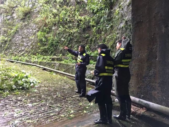“利奇馬”來勢洶洶,大雨!暴雨!狂風!接踵而至……,多數人守在家里躲避這百年一遇的臺風,而臺州高速人卻一直堅守在高速一線,巡查、搶險、處置。 在黃土嶺隧道所微信群里,即時播報著黃土嶺隧道運行情況,即時播報著抗臺一線的緊急高效處置狀況。 “管理所已恢復正常供電,溫向、寧向隧道部分圖像無信號。” “寧向13#豎井有水往車道上流。” “溫向北洞口山體邊上有小瀑布。”
