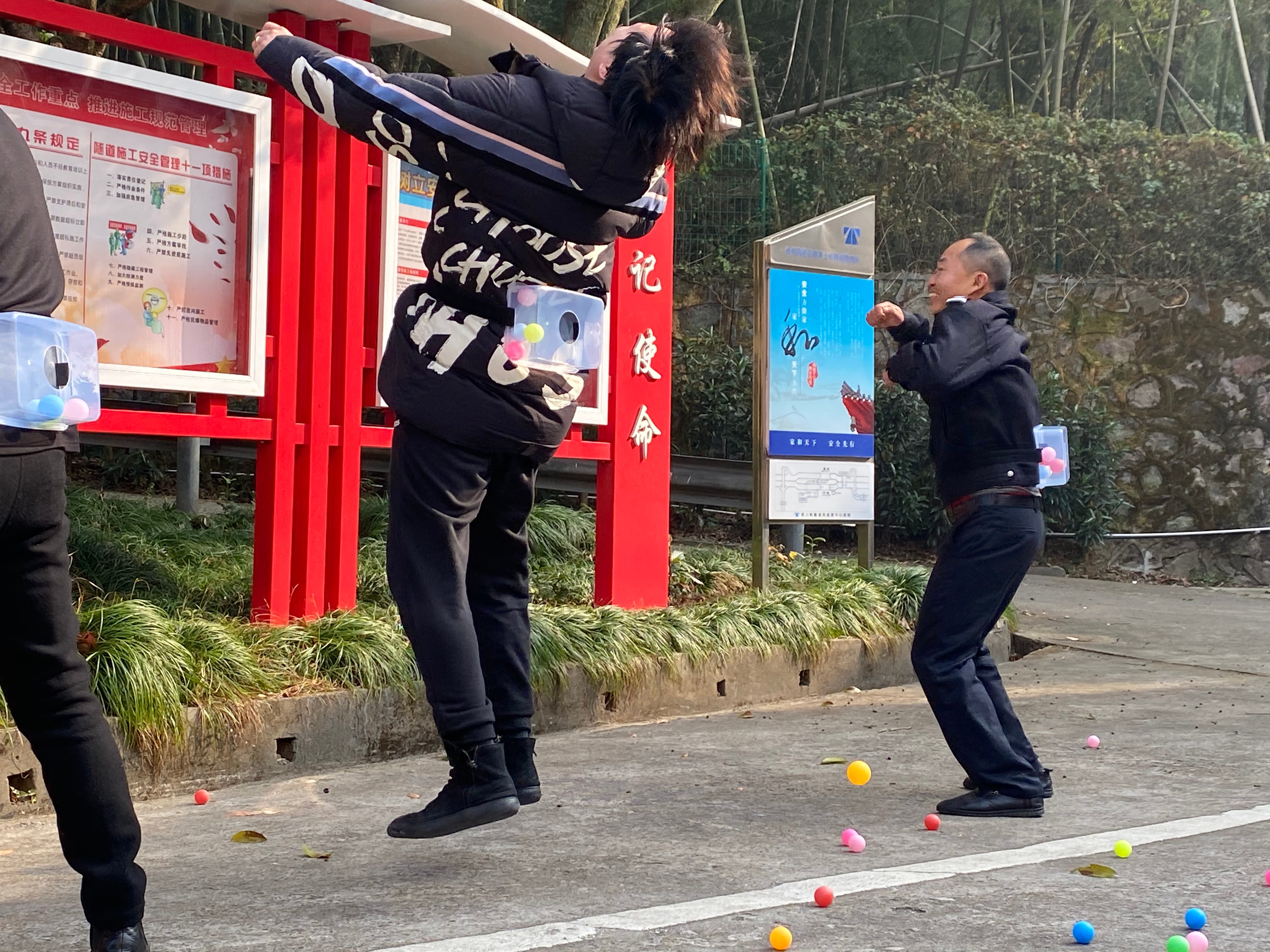 12月29日上午,臺州高速黃土嶺隧道所舉辦了一場別開生面的趣味運動會,寬闊的廣場上充滿了歡聲笑語,吶喊聲、加油聲此起彼伏,隧道所領導與全體員工積極參與、共同合作。 本次“運動會”分個人與團體兩種形式,個體項目有投籃、飛鏢、電臂達人等,團體賽項目分別是無敵風火輪和摸石過河。 “預備,開始!”隨著裁判員一聲令下,摸石過河比賽開始了,選手們迅速進入狀態,彎腰、拿磚、邁腳,隊員竭盡全力地將腳下的磚塊不停地移動。兩只腳踩在一塊磚上,兩只手把另外兩塊磚不斷地向前移動。“還有5米、2米,堅持住!”隊員們個個腳疼腿軟,但毫不松懈,勇爭第一,最后執勤二隊一舉勝出。