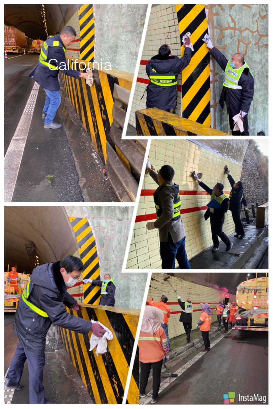 1月14日,黃土嶺隧道所組織黨員志愿者清洗馬鬃嶺隧道。 年關臨近,馬鬃嶺隧道日流量高達40000多輛,汽車尾氣、揚塵給隧道壁和標志牌等設施造成了污染,嚴重影響隧道面貌和行車視線。為了提升隧道內(nèi)道路通行環(huán)境,黃土嶺隧道所抓住節(jié)前清洗隧道的良機,與高速交警、養(yǎng)護公司聯(lián)合制定清洗保暢方案,確保隧道清洗順利開展。