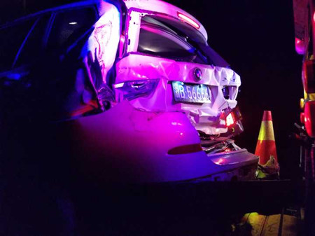 當(dāng)天18:16分左右,該隧道內(nèi)還發(fā)生了一起嚴(yán)重追尾事故,一輛寶馬X3在進(jìn)入隧道之前由于車速過(guò)快避讓不急,狠狠的與前方一輛大貨車發(fā)生追尾,被撞得慘不忍睹。所幸車上只有駕駛員一人且系了安全帶并未受傷。