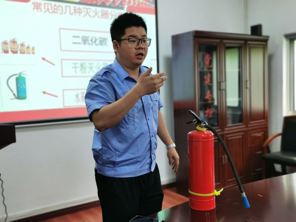 圖為楊金德示范滅火器操作方法 基于隧道所工作場所配備的二氧化碳和水基滅火器,楊金德再次示范了滅火器的操作方法,又介紹了水基本滅火器的工作原理,它在噴射后,成水霧狀,瞬間蒸發(fā)火場大量的熱量,迅速降低火場溫度,隔離氧氣,從而達到快速滅火的目的。 培訓課中,一則則鮮活的案例警示大家,火災(zāi)之患不容忽視,安全生產(chǎn)要做到“防災(zāi)結(jié)合,預防為主”,火災(zāi)的初期是最佳救援時機,家里、車上、單位都應(yīng)配備滅火器及其他滅火設(shè)備,而且還要會使用。不要讓屏幕上的悲劇多次重演,人人要時刻敲響安全警鐘, 陳智慧