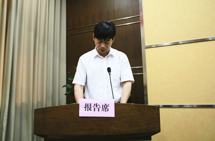 圖為公司副總經(jīng)理董阿林宣讀議案