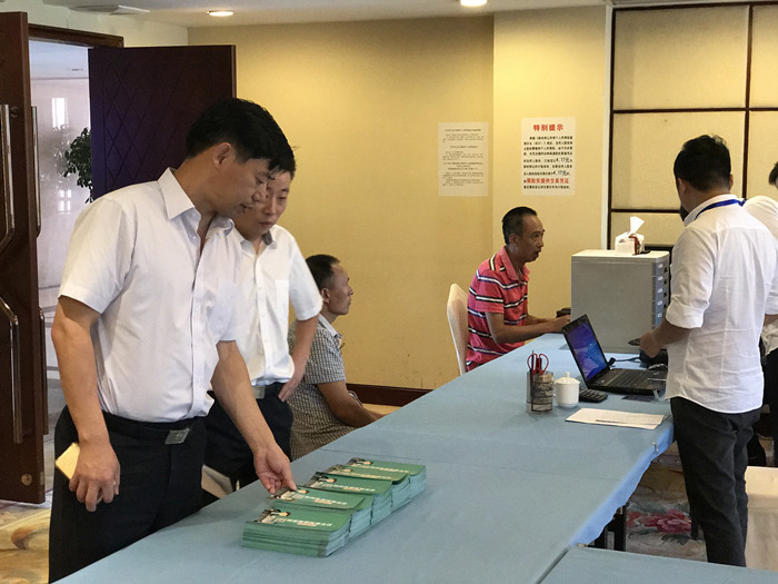 圖為集團副總經理陳保衛(wèi)正在檢查收購點宣傳資料