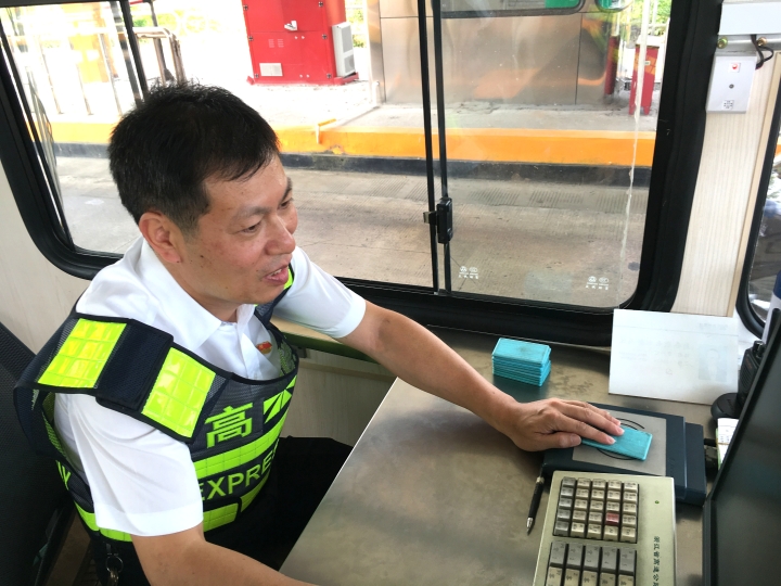 “平時看文明服務錄像的時候感覺收費員工作很簡單,等到自己操作的時候真的是雙手不聽腦子使喚啊......”正在溫嶺西收費所3號崗亭收費的副總經理章海峰一邊自言自語著“體驗感”,一邊擦了下額頭上的虛汗。