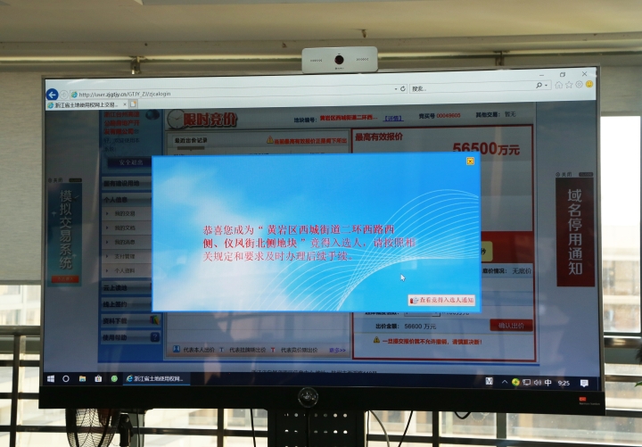 喜報!臺州高速再次成功斬獲黃巖新地! 6月18日上午9點20分,臺州高速集團再次斬獲黃巖新地!以5.65億元成功競拍黃巖區西城街道二環西路西側、儀鳳街北側地塊。臺州高速集團黨委書記、董事長、總經理陳文波坐鎮指揮,副總經理羅小將陪同參加競拍。