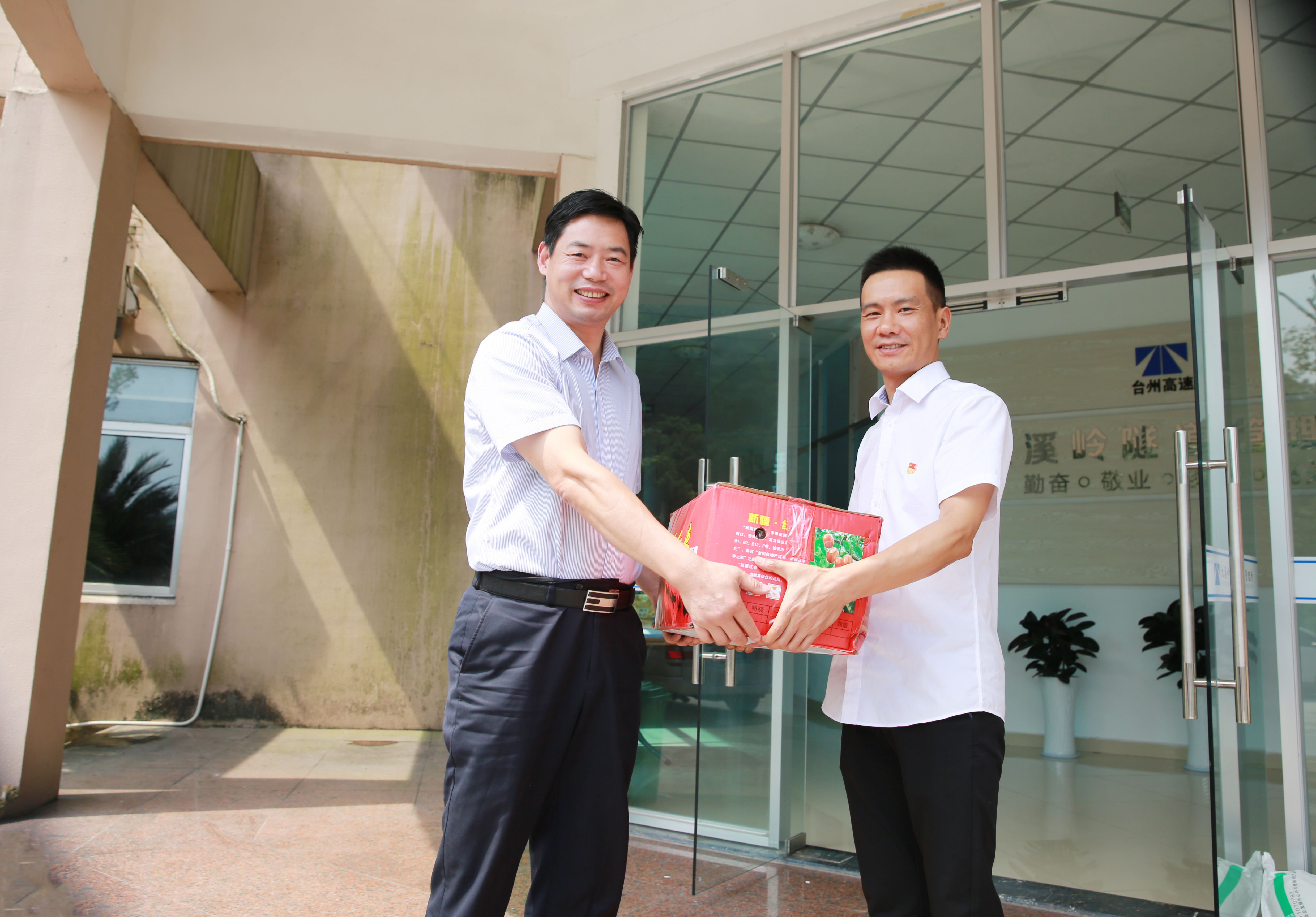 沁人心脾|臺州高速集團開展“夏日送清涼”活動 7月15日上午,臺州高速集團開展“夏日送清涼”活動。集團黨委書記、董事長、總經理陳文波,副總經理陳保衛、羅小將、章海峰、工會主席項同富兵分兩路,帶領送清涼慰問組同志,深入高速交警、路政、匯通養護公司、各收費所、隧道所、中心、子公司等單位看望慰問值守人員并送去慰問品,向冒著高溫酷暑辛勤工作的工作人員表示敬意和慰問。感謝廣大員工在高溫下堅守崗位、辛勤勞動,集團領導親手送上防暑降溫的紅棗、綠豆、蓮子、飲料等物資,為在炎炎夏日中堅持工作的一線廣大人員送去了絲絲清涼。