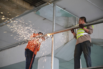 圖為工人在進行切割作業(yè)