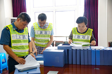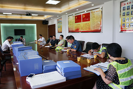 圖為檢查內(nèi)業(yè)資料現(xiàn)場