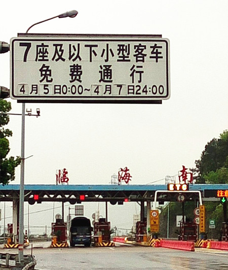 圖為免費通行提示牌
