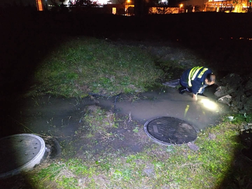 堅(jiān)持不懈找水閘 不畏困難挽損失 12月17日晚,工程養(yǎng)護(hù)部機(jī)電設(shè)備維養(yǎng)中心值班隊(duì)員頂著寒風(fēng),通過細(xì)致耐心摸尋,成功找到水管總閘并將其關(guān)閉,不僅為公司節(jié)約幾百噸水資源,還為后續(xù)的搶修工作創(chuàng)造了有利條件。 當(dāng)晚19點(diǎn)左右,正在參加周一學(xué)習(xí)夜的中心隊(duì)員接到臺(tái)州南收費(fèi)所電話,告知副站一根地下水管爆裂,附近積水較多。接到搶險(xiǎn)指令后,隊(duì)員們火速趕往現(xiàn)場(chǎng)查看,發(fā)現(xiàn)漏點(diǎn)位于外廣場(chǎng)綠化施工區(qū)域,周邊堆滿了泥土,底下不停地涌出白花花的水,并向草坪兩邊流淌,形成了多個(gè)水坑。 “必須先找到水管總閘將其關(guān)閉,否則后續(xù)搶修工作沒法開展。”隊(duì)長(zhǎng)陳華棟一邊說一邊解衣?lián)Q鞋,借著隊(duì)友微弱的手機(jī)燈光,打開了周圍一個(gè)個(gè)標(biāo)有“水”字窨井蓋,可一連打開三個(gè)都未發(fā)現(xiàn)有水閘時(shí),有人勸他晚上光線不好先行暫停,等明天天亮后再尋找。