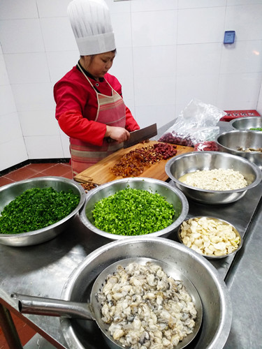 臺州的元宵節(jié)是從正月十四開始的。十四吃咸羹、十五吃甜的山粉糊。下午兩點,臺州所的食堂大姐們就開始忙活了。 早在前幾天,來自臨海的食堂大姐利花,就開始為臺州所的元宵節(jié)準(zhǔn)備食材清單。在她的家鄉(xiāng)四岔,咸的糟羹里是要放海蠣的,她說一到正月十四,滿街都會有剛從牡蠣殼里現(xiàn)挑出來閃著新鮮青色的海蠣肉賣,但在黃巖,找遍菜場,只有冰凍的泛著白光的海蠣肉,也不是每天都有賣,有時還要靠運氣才能買到。利花有些無奈,她想,都是離海不遠(yuǎn)的地方,為什么就沒有新鮮的海蠣?她也許不知道,在黃巖一帶,大家還是喜歡吃甜的山粉糊,所以不需要海蠣。