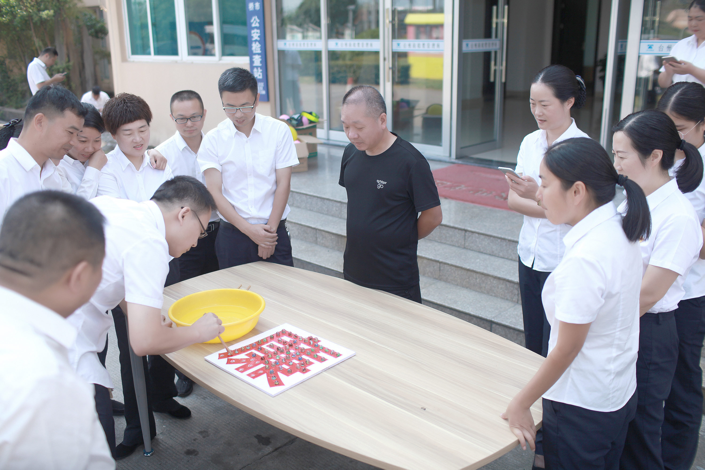 圖為活動現場 活動共由五個參賽隊伍組成,趣味活動項目都包含廉潔的寓意,《“廉”接不斷》將乒乓球置于球拍上,參賽隊員單手拿球拍繞小紅帽往返共20米;《飛鏢射“貪”》用飛鏢射圓形靶中的貪字;《蒙眼刺“貪”》參賽隊員手持牙簽蒙住眼睛走到對面將氣球上的貪字刺破;《反腐倡廉》用實心球將保齡球瓶推到;《填“廉”字》將規定粒數的彈珠用筷子夾到“廉”字的孔位上;《徐徐清風》將第一個茶杯里的乒乓球依次吹到最后一個茶杯里。員工們在各種廉潔趣味活動中加深了對廉潔文化的認知,營造良好的廉潔氛圍,促進基層廉政文化建設。