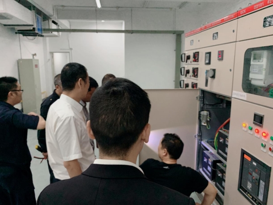 圖為多方合力查找問題現場 5月23日,電力公司上門檢修,告知配電房及電路問題一切正常。面對空調正常、電路正常的報告,展廳內又嘗試開啟空調,但10分鐘左右高壓又跳閘。即將進入炎熱的夏季,房產銷售展廳內不能缺少空調。 房產公司求援于工程部機電設備維養中心,5月28日,葉俊等四名專業電力人員,以及大溪嶺隧道所金衛軍赴銷售廳對電力問題進行現場勘察,經仔細梳理、剖析,得出結論后反饋給電力部門,電力部門采納建議后第二次派人前來整改,歷史遺留電力問題終于徹底排除。 鄭攀