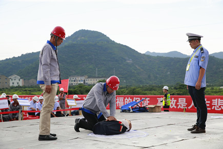 7月5日下午,根據(jù)“安全生產(chǎn)月”活動(dòng)安排,內(nèi)環(huán)路(黃巖段)四個(gè)標(biāo)段的施工、監(jiān)理單位分別派出代表隊(duì),在內(nèi)環(huán)北路(黃巖段)第四標(biāo)段施工現(xiàn)場(chǎng),依次開展消防、現(xiàn)場(chǎng)急救和意外窒息事故的應(yīng)急救援演練。