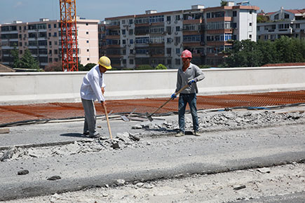 鐘志偉是8#立交項目部的現場管理人員?!澳壳罢谑┕さ氖?#立交主線橋的橋面鋪裝層,這個班組是月初進場,按照預計工期,月底前必須完成所有橋面鋪裝。”鐘志偉說,時間緊、任務重,三伏天也要連軸轉。